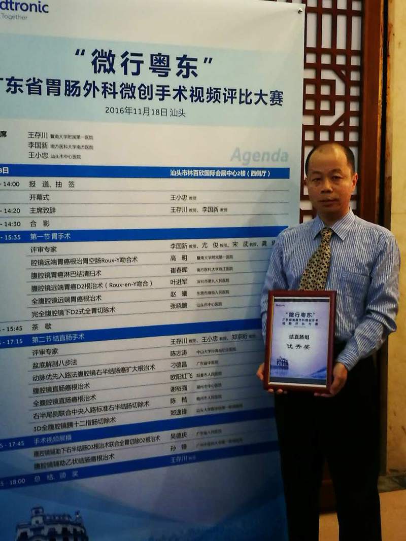 严先生只是我院普外科微创技术手术发展的受益者之一。近三年,我院普外科在学科带头人欧阳红飞主任医师的主持下,以微创技术为发展特色,先后开展了腹腔镜阑尾、胆囊切除术,腹腔镜胃穿孔修补术,腹腔镜胃癌根治术,腹腔镜结直肠癌根治术,腹腔镜胰十二指肠切除术,腹腔镜胆总管切开碎石取石术,腹腔镜巨脾切除术等微创技术项目,部分项目调补了阳春乃至阳江技术领域内的空白,科室微创手术比例由2014年的5%上升至2017年的40%,使很多肝胆胰脾、胃肠肿瘤等方面疾病的患者从中受益。特别是开展的3D高清腹腔镜下手术,凭借高清技术和立体感,既可以缩短手术时间,减小医生的手术难度,让手术更精准,又能减少患者血管、神经的损伤和手术并发症,大大降低患者术中、术后痛苦。