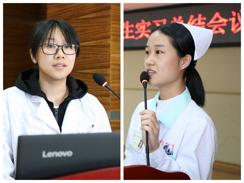 之后,优秀护理实习生邓惠文和优秀临床实习生朱茵茵分别代表全体护理和临床实习同学发表了实习发言,分享了在实习过程中的点点滴滴,衷心感谢带教老师在自己成长路上给予的正确引领,感谢科室老师对其专业技术成长进行的悉心教导,表示对未来充满希望,祝愿我院早日成功创建三级甲等综合医院。