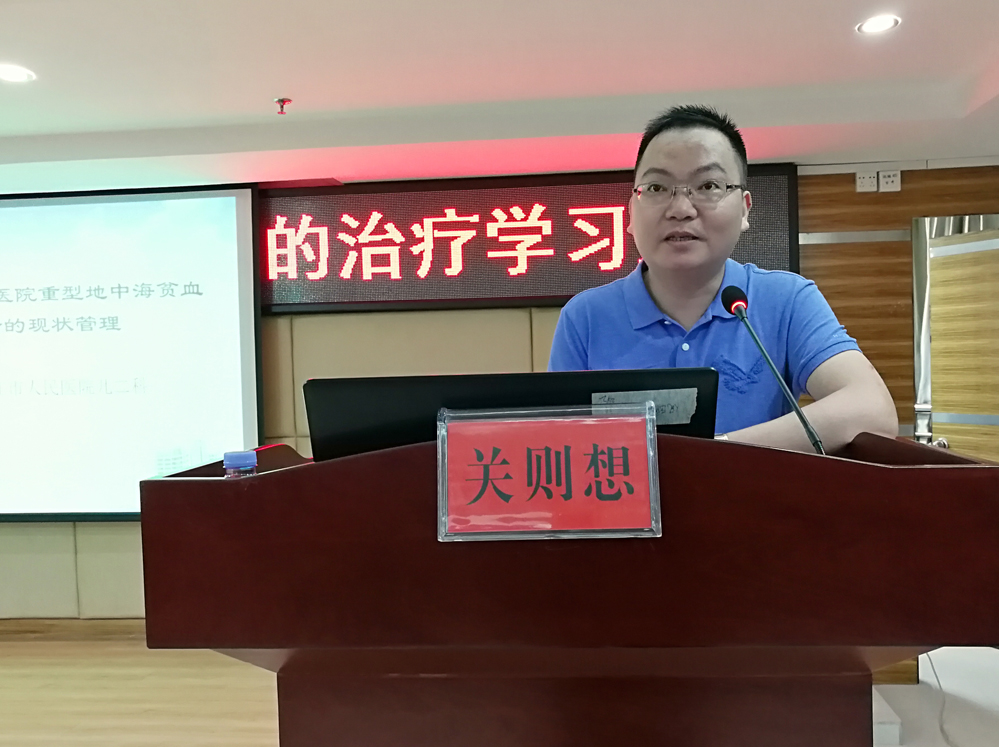 关则想副主任医师围绕“2018年阳江市人民医院重型地贫的现状与管理”,逐一讲述了地中海贫血治疗的输血管理、去铁治疗管理、去铁相关用药副作用的比较、去铁的治疗方案、铁过敏并发症的监测等知识内容,并就如何取得社会的关注和帮助提出见解。