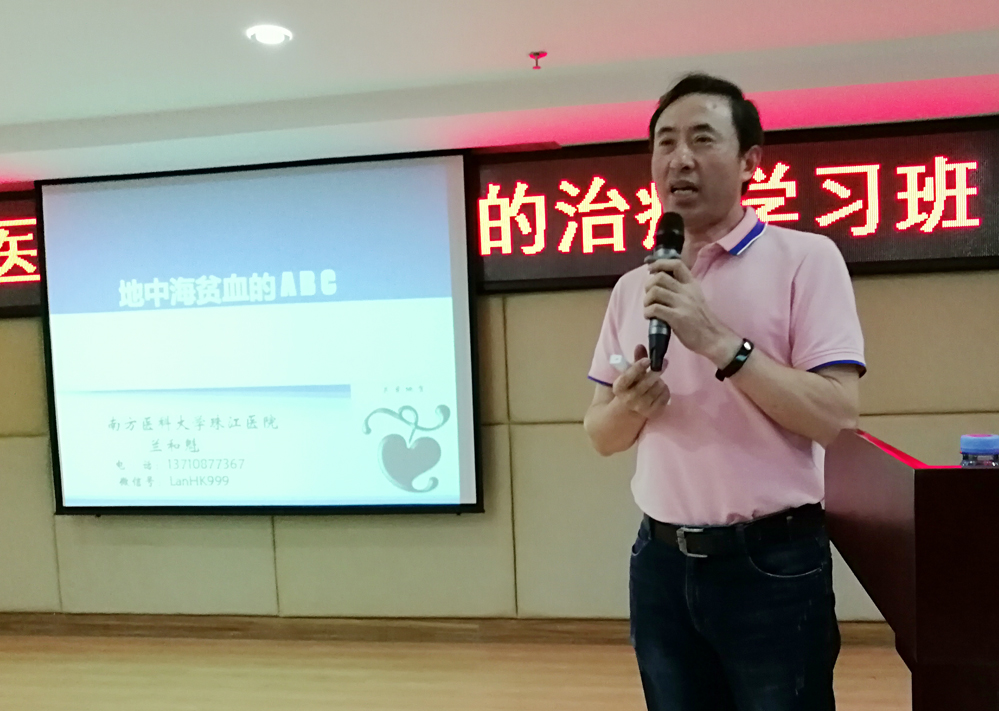 学习班上,兰和魁教授以“地中海贫血的治疗”为题,阐释了地中海贫血的定义、分布、分型、病理生理、临床特点、诊断程序、治疗方案、预防等知识,并分析了心理社会问题和遗传的基因案例。