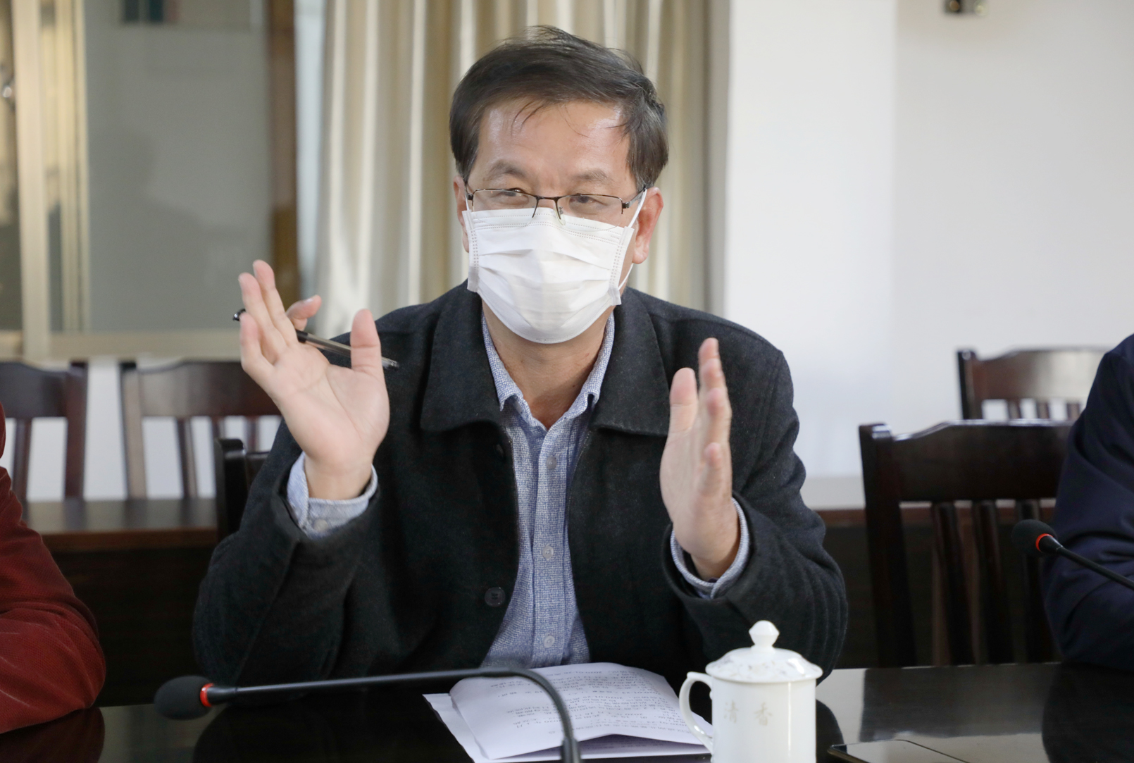 元月24日,农历腊月三十,是辞旧迎新的日子。这个时候,我们很多人都在集福抢红包,和家人一起吃年夜饭,在温暖的家中,坐在丰盛的餐桌前,享受团聚的温暖。但那一天对张振辉同志来说,却比往常更忙碌、更紧张。他早早的从家里出发,到了深夜才回到家。他像陀螺一样,围绕“疫情防控”这个点,在办公室、会议室、医生办公室、病房无限循环,从处理文件到参加各种会议,从统筹部署到梳理发热门诊接诊流程,从查房到会诊救治……所有的大事小情,一一跟踪落实。这一天,他开了好多个重要会议,接了100多个重要电话,中午开会间隙只匆匆吃了几口盒饭……