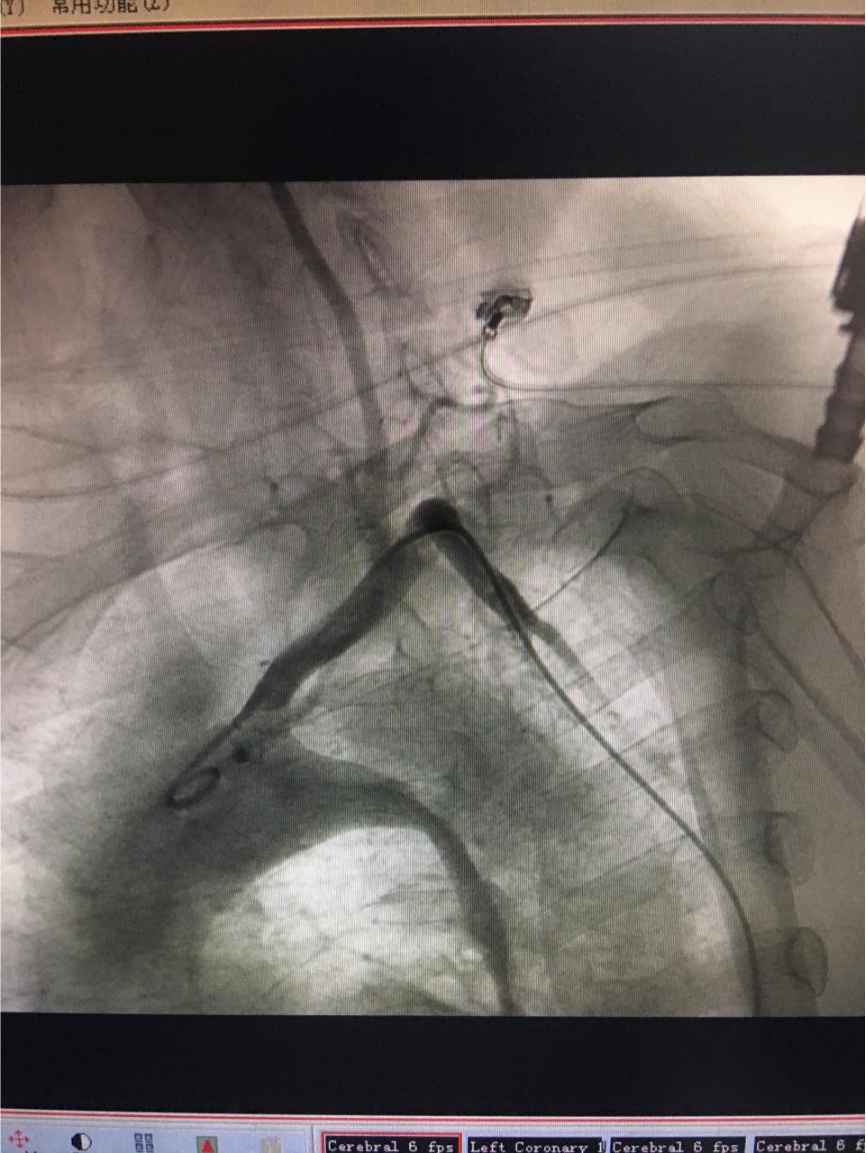 2、主动脉DSA检查:主动脉弓-降主动脉处见破裂口