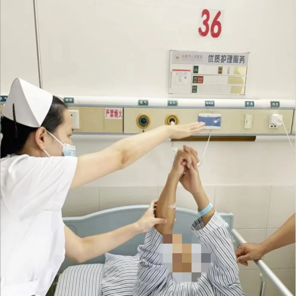 36床刘伯,因中风后偏瘫卧床,心情闷闷不乐,曾护士细心给刘伯讲解了中风的三级预防,又分享了一些通过早期坚持康复恢复健康的案例,点燃刘伯对自理生活的希望。刘伯坚持在护士和康复治疗师协助下进行功能锻炼,加速了康复进程。