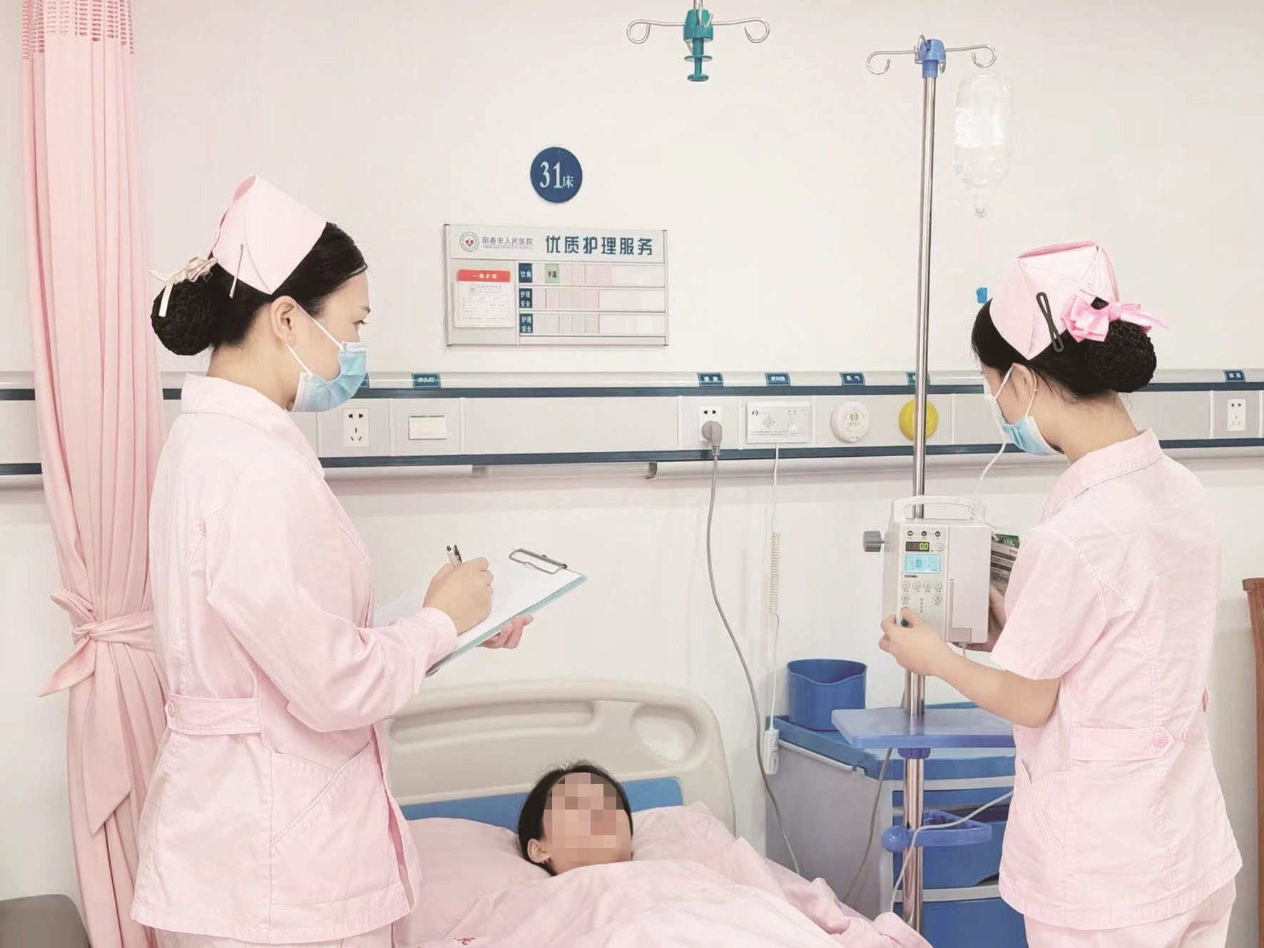 ▲护士监测产妇身体恢复情况